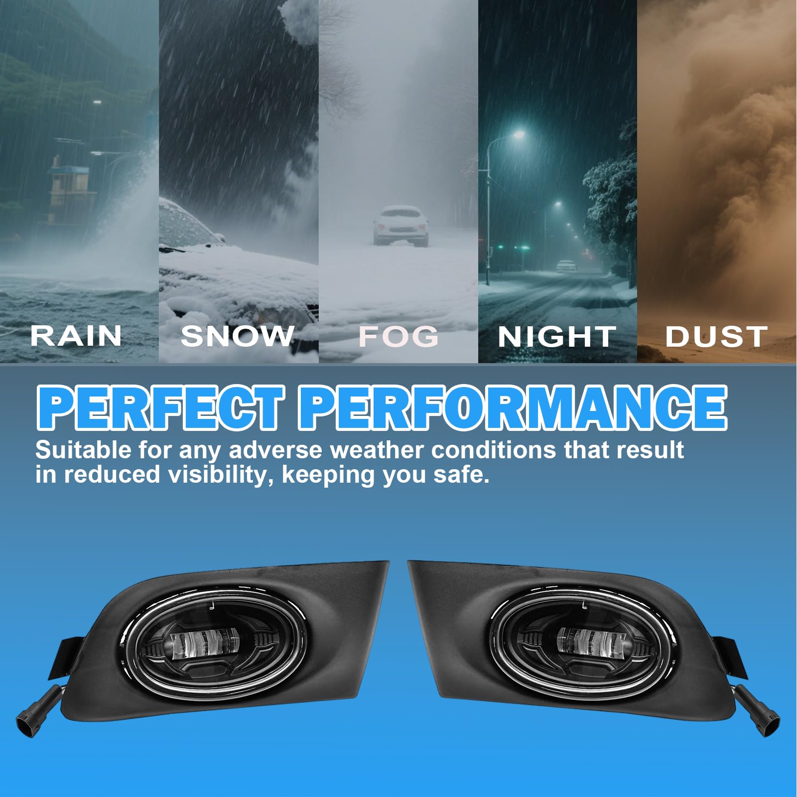 - Durable Structure: The well-sealed fog light can prevent moisture or dust from entering the inside of fog lights in all weathers, to ensure excellent weather resistance, and impact resistance
