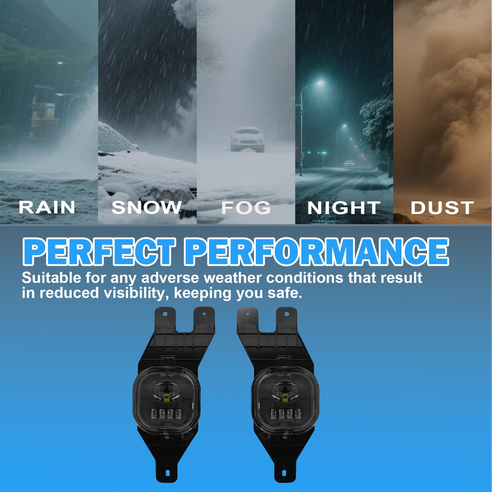 - Rapid Response: LED fog lights can reach maximum brightness almost immediately after being turned on, with a fast response time, providing a rapid lighting effect and enhancing the safety of driving