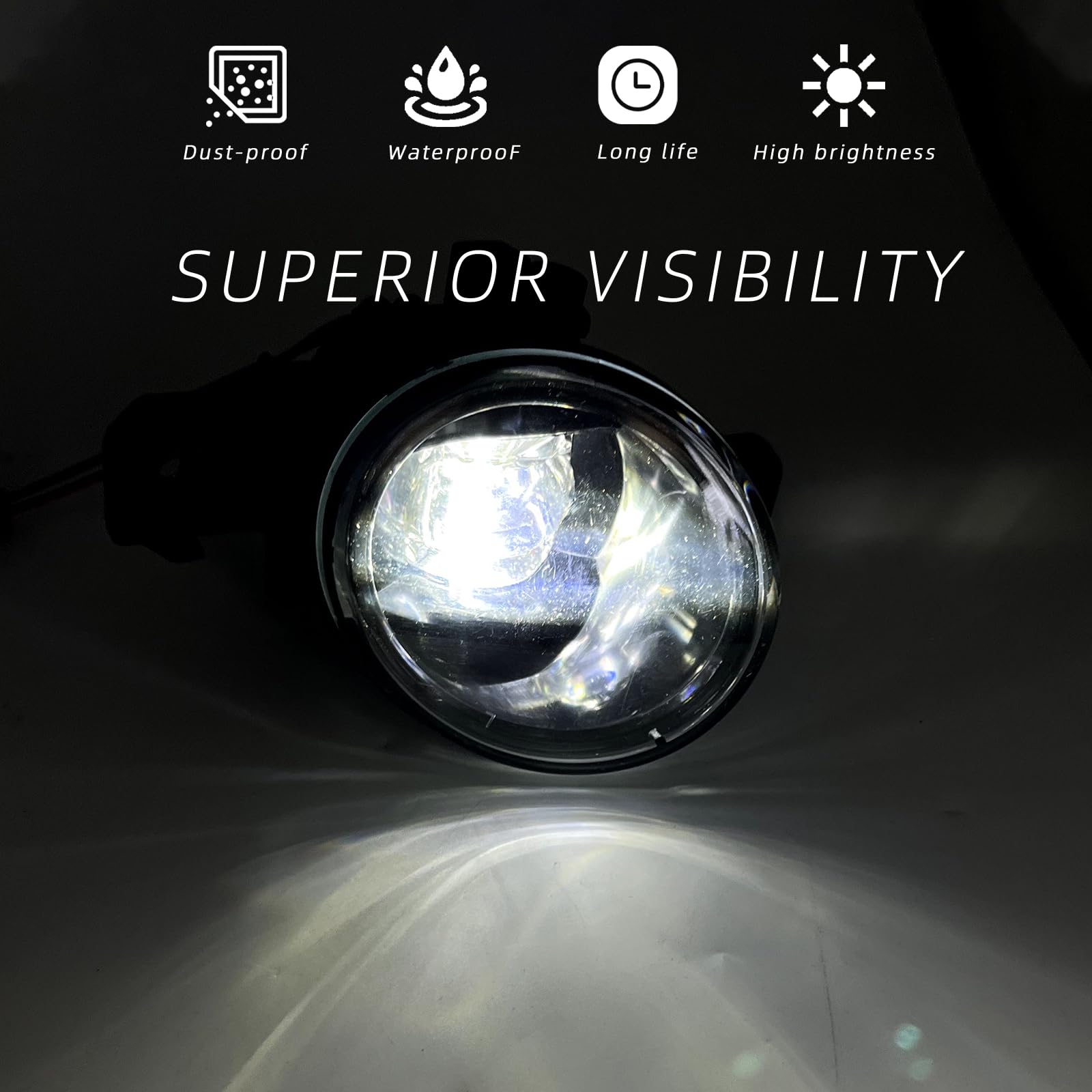 - Waterproof & Dust-proof: LED fog lights made of fully sealed ABS plastic housing and PC lens, IP67 waterproof test, strong impact resistance, provides reliable service in all weather conditions